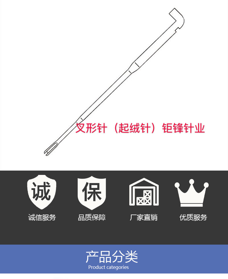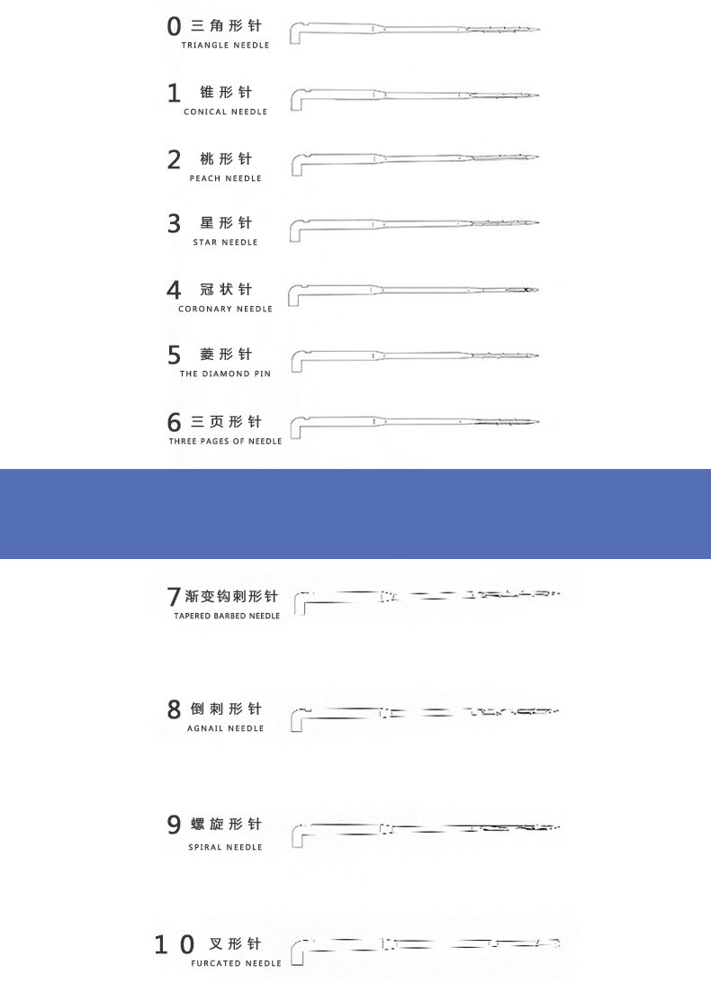 本公司产品(Y)型无纺针,具有避免损伤纤维、使用寿命长、减少断针率等明显好处,深得各无纺布厂家的喜爱,取代国外针。产品已进入欧美国家市场。